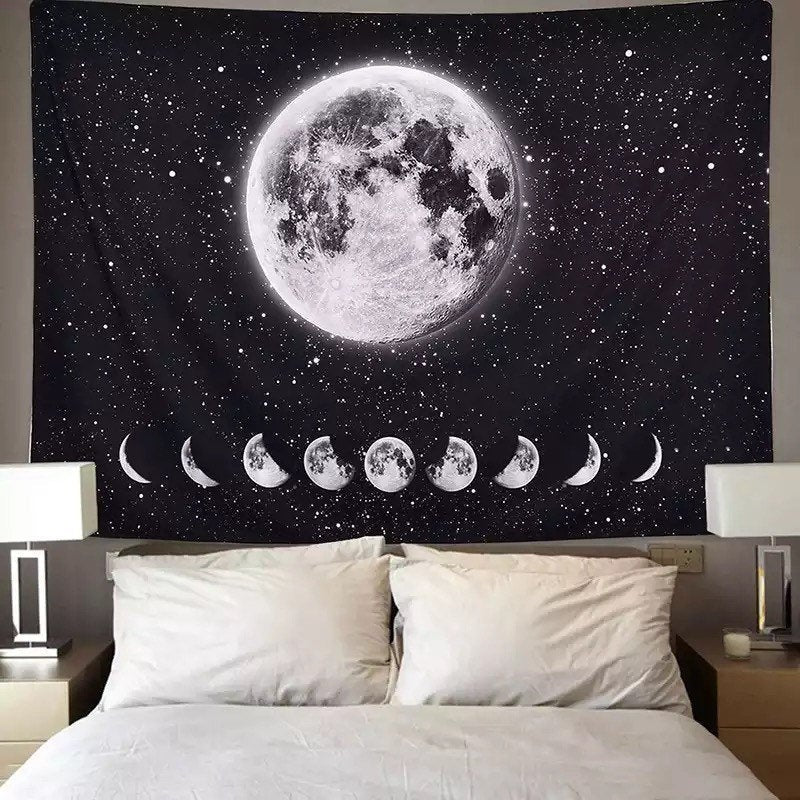 Bring the energies of the moon and the vibes of the universe into your space with this beautiful Moon Phase wall tapestry