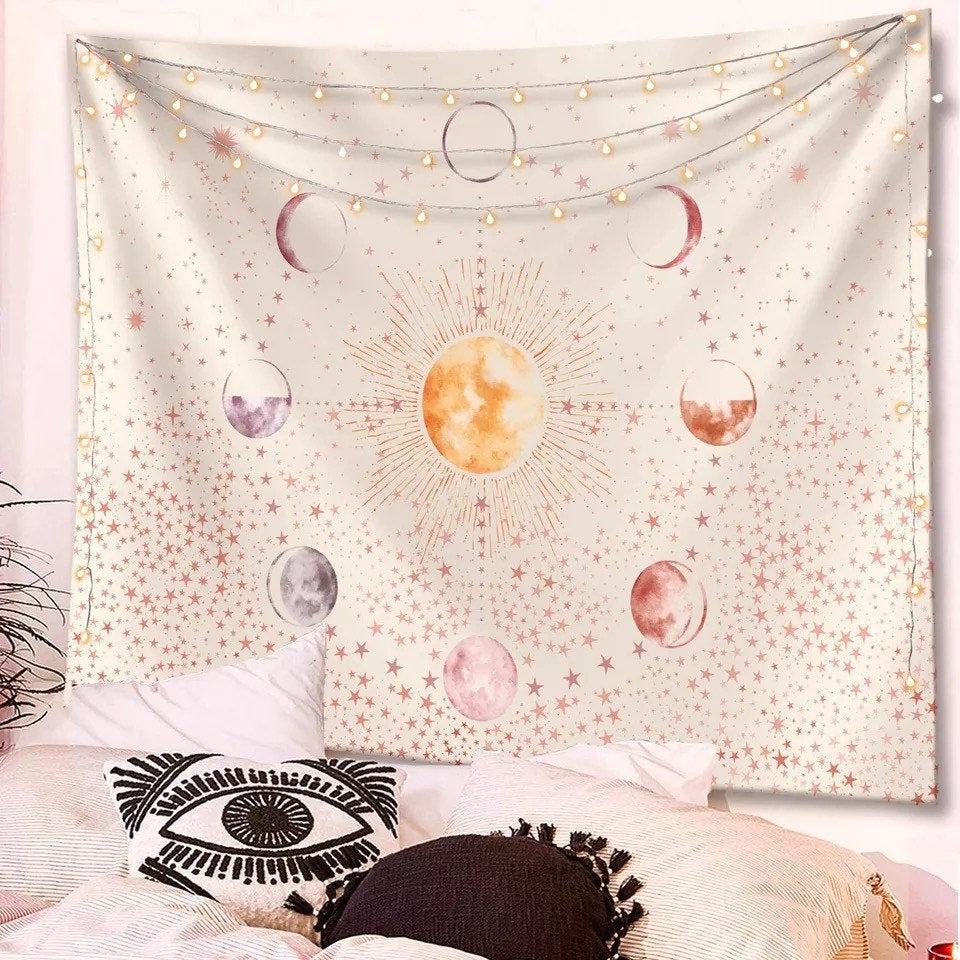 Bring the healing vibes of the moon and the starry galactic night sky into your space with this gorgeous moon and star wall tapestry.